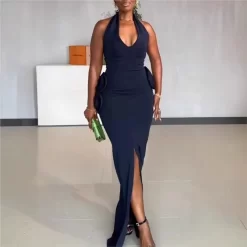 Summer New Sexy Party Dress For Women Three-dimensional Floral Halter Slit Slim-fit Wrap Hip Skirt Stylish Elegant Long Dresses